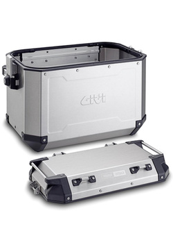 Trekker Outback side-case, with aluminium structure and profiles. Available in two different sizes: 37 ltr and 48 ltr. Equipped with the MONOKEY® CAM-SIDE fitting system in die-cast aluminium and inserts in reinforced technopolymer.
