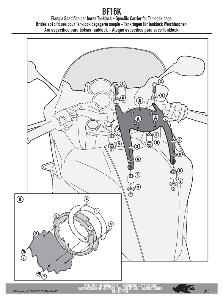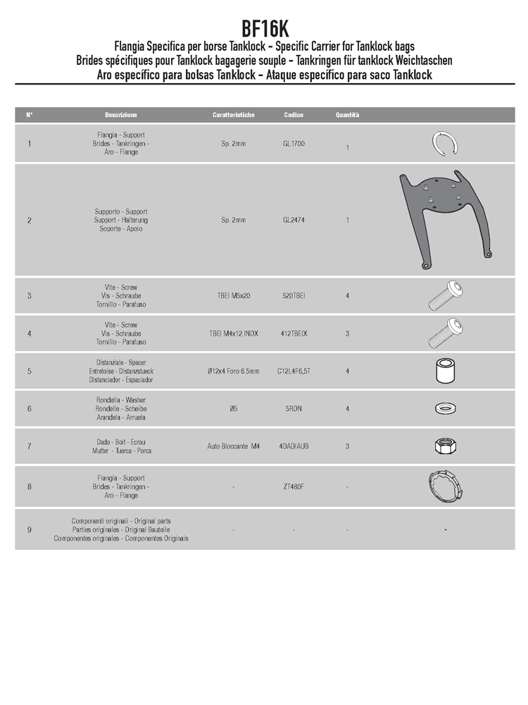 Specific flange for fitting the Tanklock tank bags BF15
