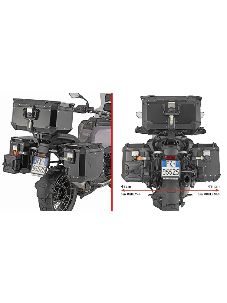 - Umożliwia montaż asymetrycznych kufrów bocznych Trekker Outback Monokey® Cam-Side na motocyklu