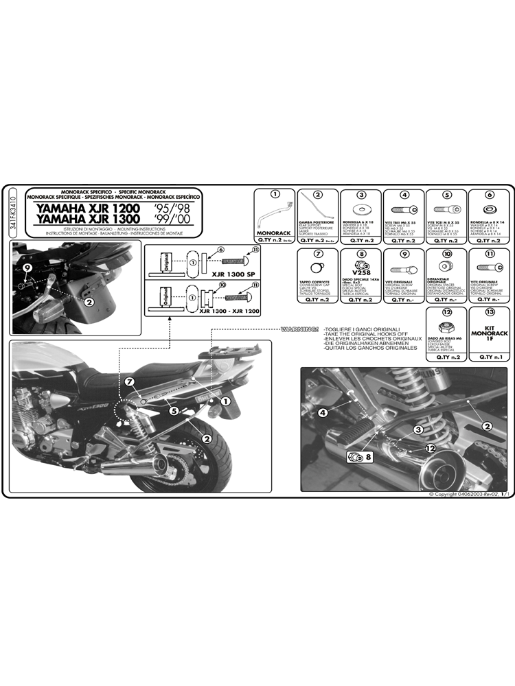 Rear rack for MONOKEY® or MONOLOCK® top-case for Yamaha XJR 1300 (98-02) i XJR 1200 (95-99)